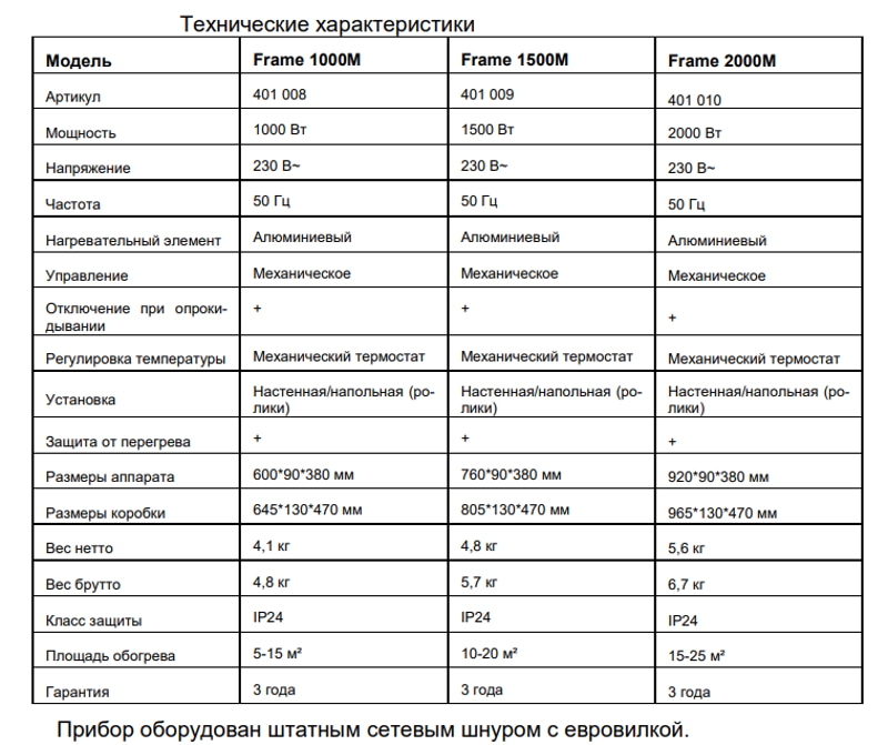 - Надежность: качество конвектора подтверждается длительной гарантией — 3 года.