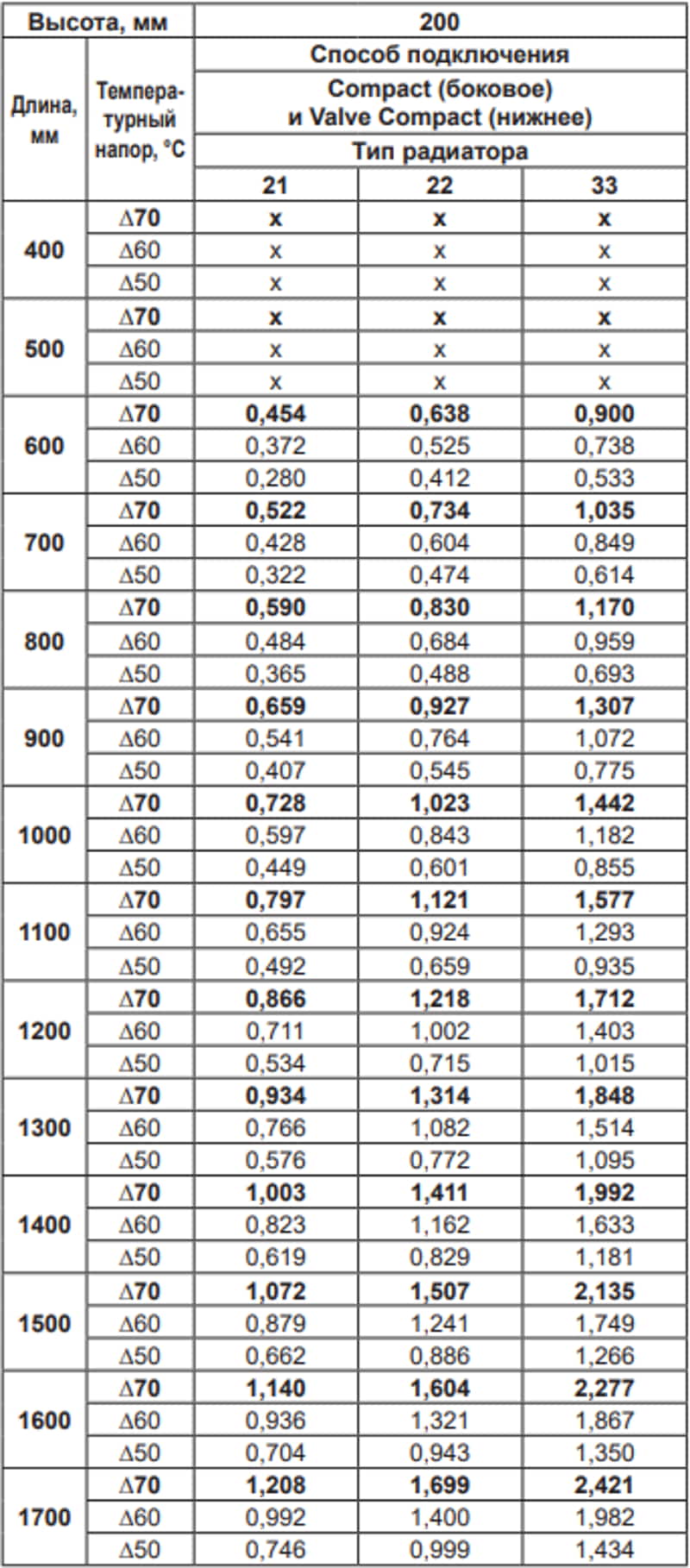 - вторая цифра – 2 – означает количество конвекторов; название Valve Compact говорит о возможности нижнего подключения приборов.