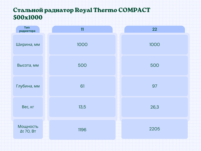 Описание Радиатор стальной Royal Thermo COMPACT 500x1000