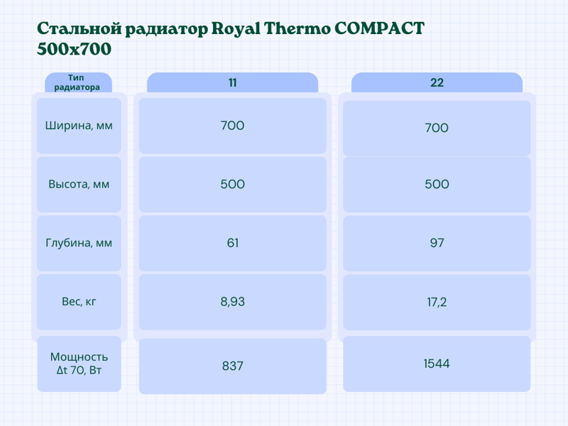 Описание Радиатор стальной Royal Thermo COMPACT 500x800