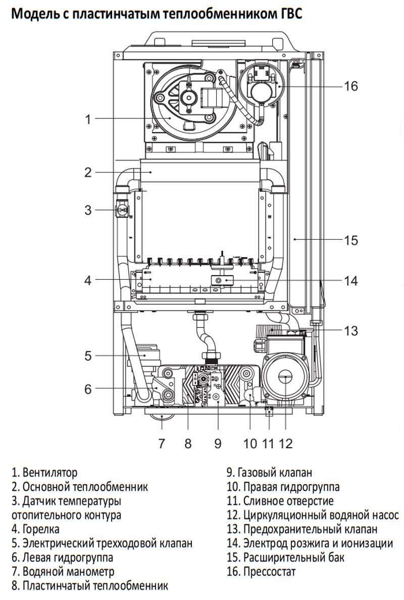 Двухконтурные котлы HUBERT предназначены для отопления помещения (контур отопления) и для производства бытовой горячей воды (контур ГВС). Эксплуатация газовых котлов HUBERT разрешена только внутри помещения с системой отопления закрытого типа с максимальным давлением 0,3 МПа (3 бар).
