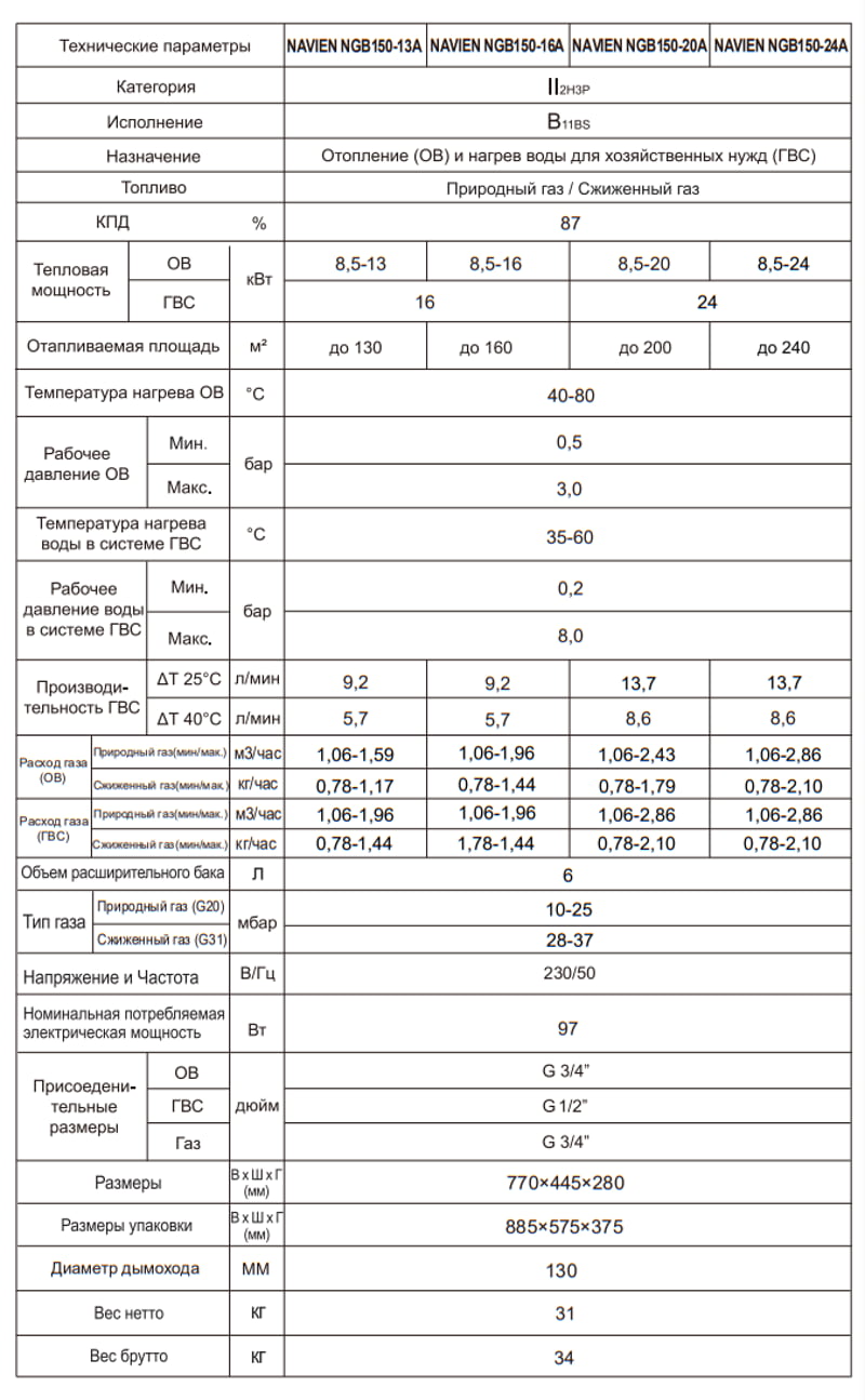 Газовый котел Navien NGB150-24A - это двухконтурный настенный котел с открытой камерой сгорания, предназначенный для отопления частных домов, коттеджей, загородных домов и дач. Котел работает на природном магистральном газе, но при необходимости его можно переоборудовать для работы на сжиженном газе.
