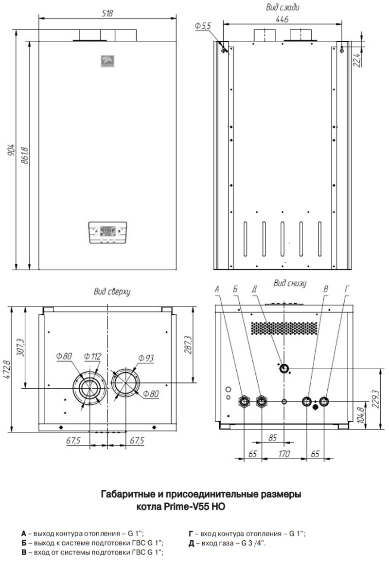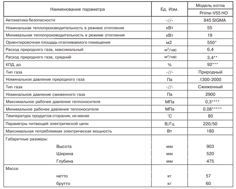 Описание Котел газовый Лемакс Prime-V55НО
