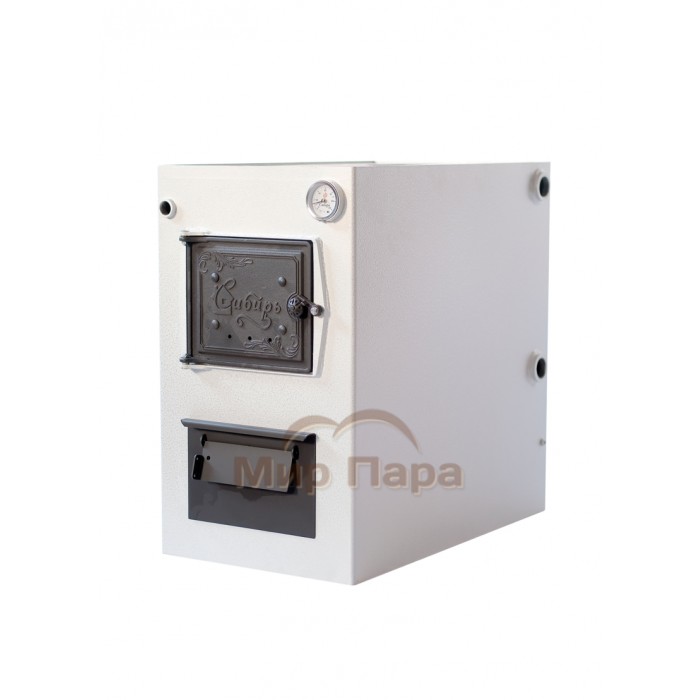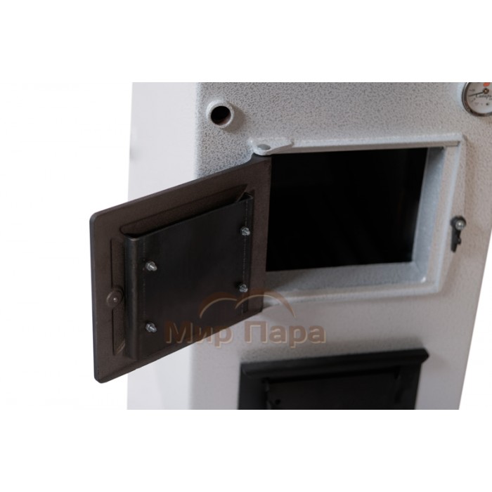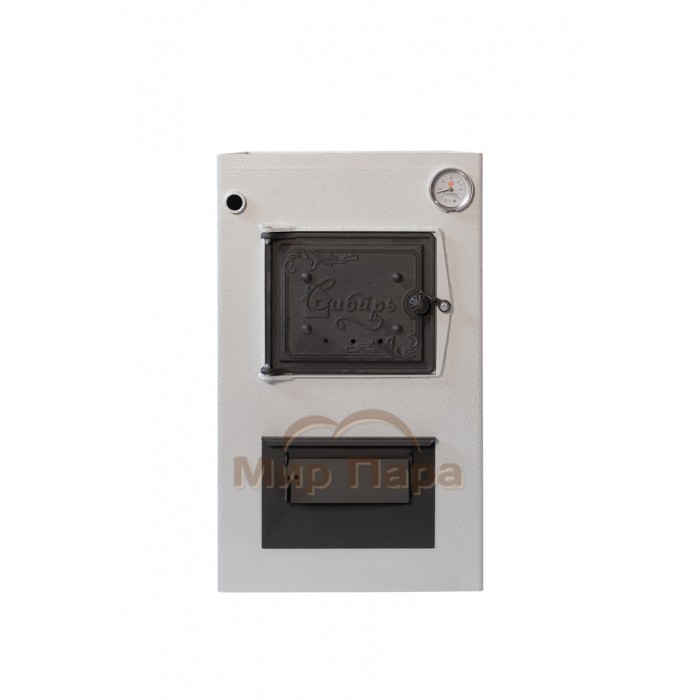 Отличительной особенностью данного котла является топочная дверца, изготовленная из чугуна с фирменным брендированным рисунком "Сибирь". С внутренней стороны дверцы установлен отбойник пламени из стали, защищающий основную дверцу от избыточной термической нагрузки и деформации. В процессе эксплуатации дверца плотно закрывается и открывается, не провисает и не ржавеет. Это дает дополнительную эстетику, необходимую в современном загородном доме.