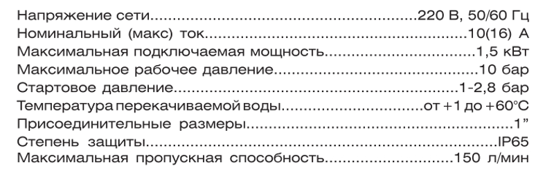 - регулировать стартовое давление включения насоса с помощью ручки управления, диапазон регулировки 1-2,8 бар;