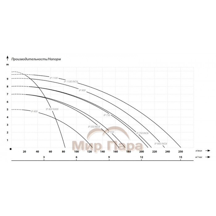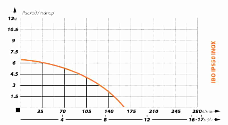 Насос обладает отлично сбалансированными напорно-расходными характеристиками при производительности насоса 10 м3/час его максимальный напор составляет 6.5 метров.