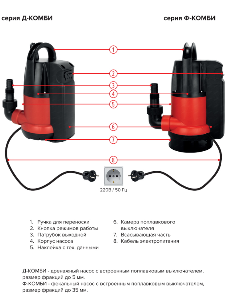 Фекальные насосы JEMIX серии Ф-КОМБИ предназначены для откачивания канализационных, дренажных, грунтовых вод в том числе включающие фракции до 35 мм.