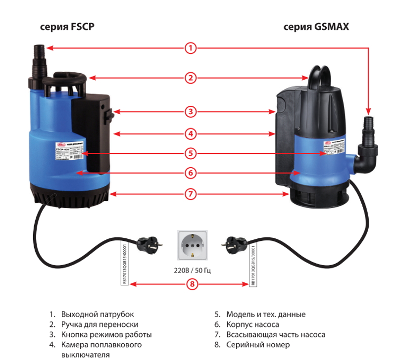 Насосы серий GSMAX имеют встроенный поплавковый выключатель, что повышает удобство использования в труднодоступных местах.