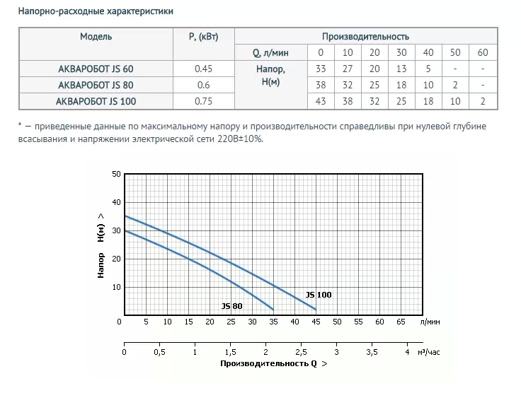 - Стабильно работает при критической глубине всасывания 8 метров.