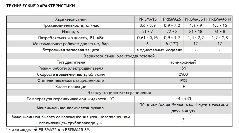 Насосы серии PRISMA предназначены для перекачивания чистой воды, не содержащей механических примесей и длинноволокнистых включений из колодцев, скважин, резервуаров, озер, рек и других источников. Могут использоваться для повышения давления в сетях централизованного водоснабжения.