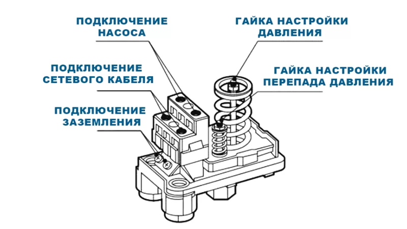 Реле давления XPS-2-AUTO имеет защиту от "сухого хода", которая срабатывает (отключает насос) при критически низком или полном отсутствии давления воды в системе.