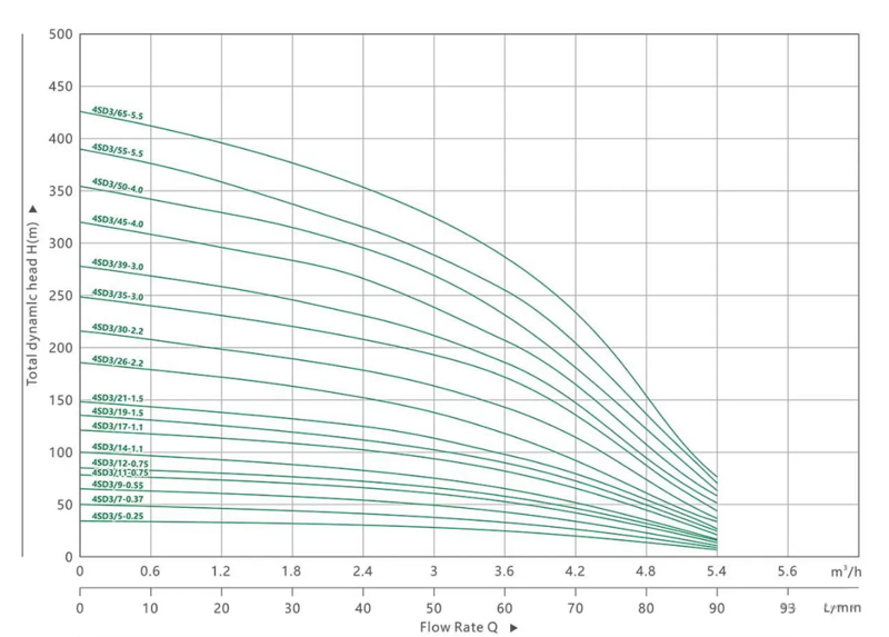 Серия 4SDM изготовлена из нержавеющей стали, обеспечивая долгий срок службы и надежность в эксплуатации. Насос имеет максимальный напор до 122 метров и максимальный расход 5.3 м3/час, что делает его идеальным выбором для использования в глубоких скважинах. Благодаря мощности 1500 Вт и высокой производительности 1.32 м3/час, он способен обеспечивать эффективную работу системы водоснабжения.