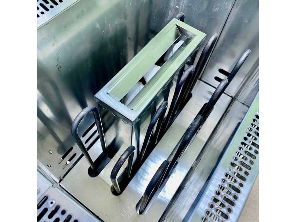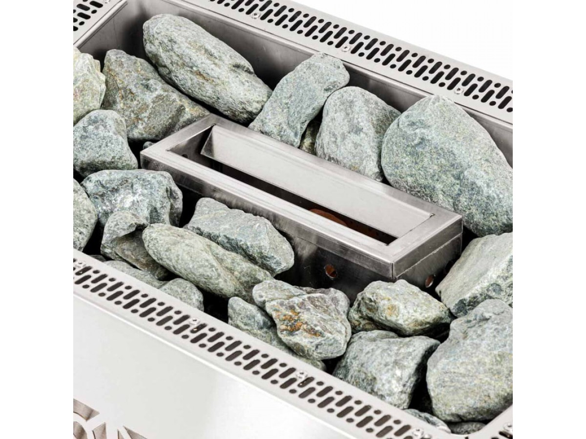 Компактный размер и варианты монтажа подходят для малогабаритных парных, а вместимость до 40 кг камней — гарантия стабильного жара и душистого пара. Корпус выполнен из премиальной нержавеющей стали, которая прослужит многие годы, сохраняя блеск и форму.