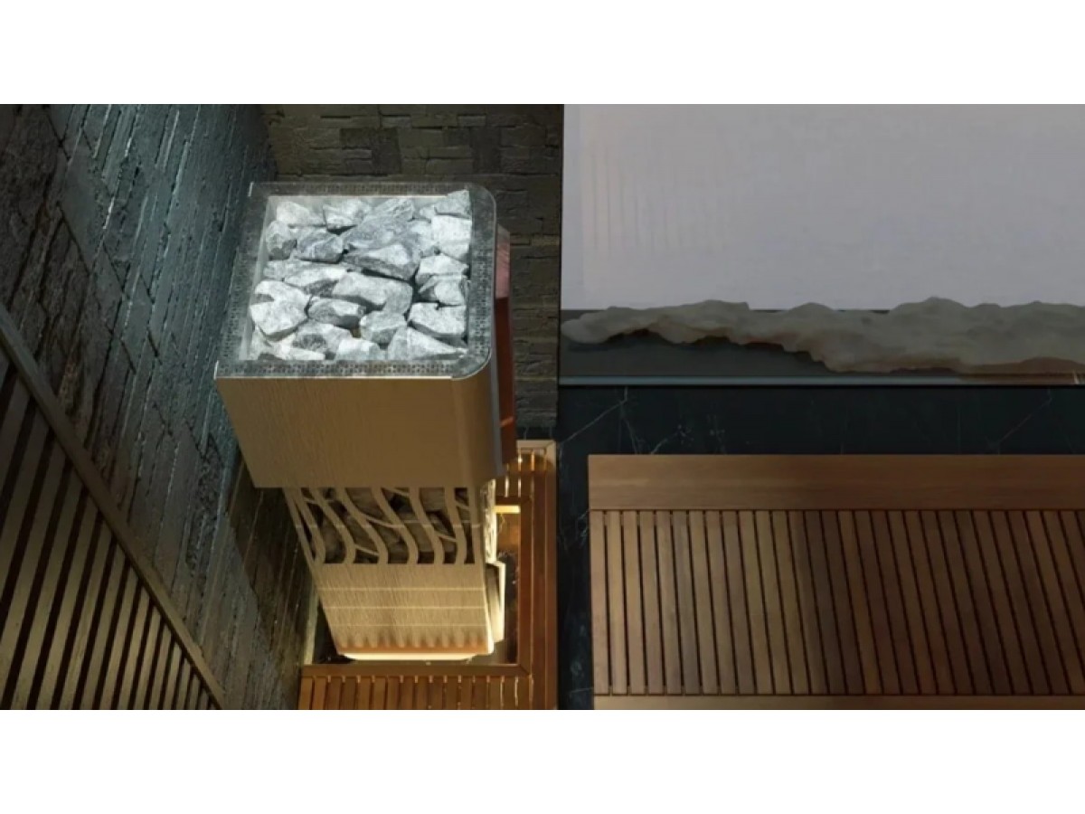 - Возможность загрузки от 40 до 230 кг камней — увеличенная масса обеспечивает мягкое, лучистое тепло и обильный, насыщенный пар.