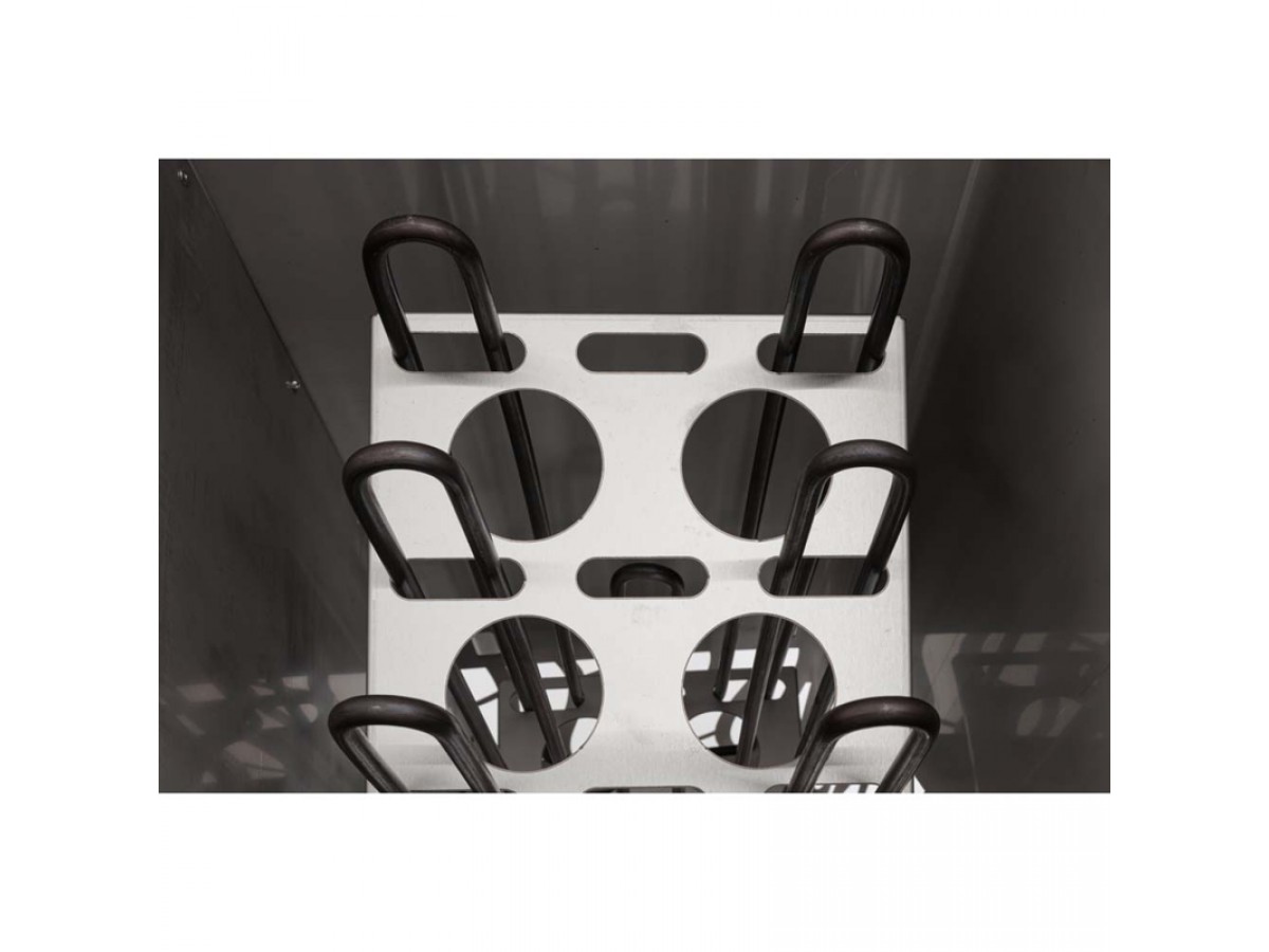 Керамические клеммники выдерживают высокие температуры и коррозию, а доступ к ТЭНам устроен максимально удобно — замену можно сделать, открутив всего четыре болта. Для безопасности предусмотрено ограждение из термоясеня и защитный козырек над нагревателями. Вместимость камней — до 100 кг — дарит мощный и мягкий пар, а элементы из натурального дерева добавляют уют и тепло визуального восприятия.