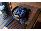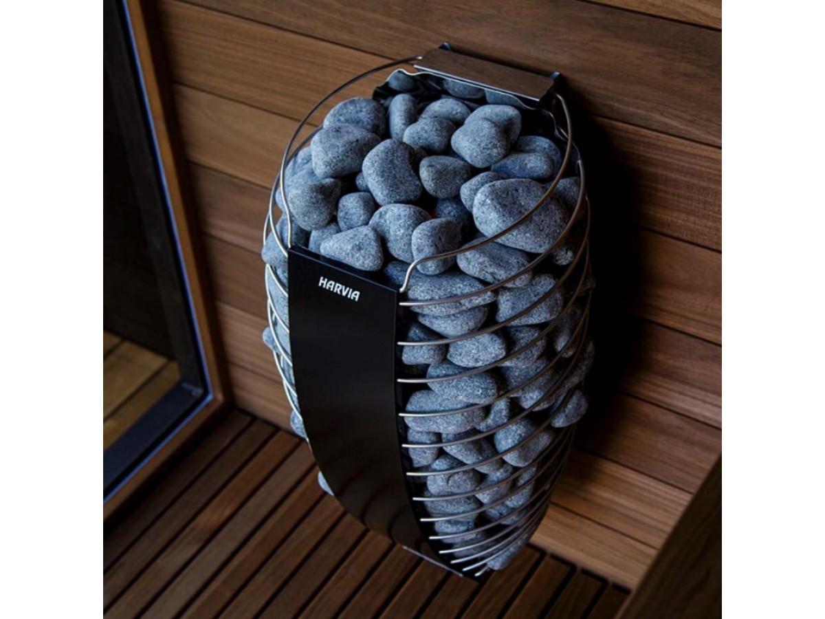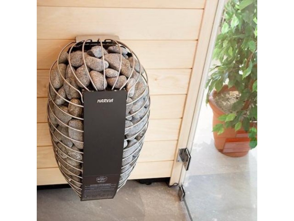 Первое, что поражает в электрокаменках Harvia Spirit — это их гармоничный и современный облик. Овальная форма, напоминающая гладкий камень, обернутый металлической сеткой, привносит в интерьер сауны эстетическую легкость и непревзойденный стиль. Такой дизайн не только красиво смотрится, но и выполняет важную функцию — обеспечивает отличную вентиляцию, позволяя теплу свободно циркулировать и наполнять помещение равномерным, мягким теплом.