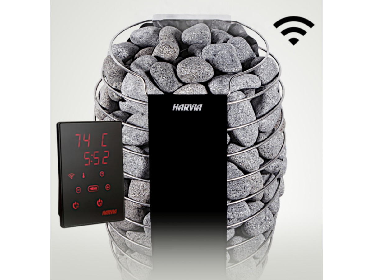 Harvia Spirit шагнула далеко вперед в плане удобства использования. Классический вариант управления — с помощью пульта, который обеспечивает простое и понятное регулирование.