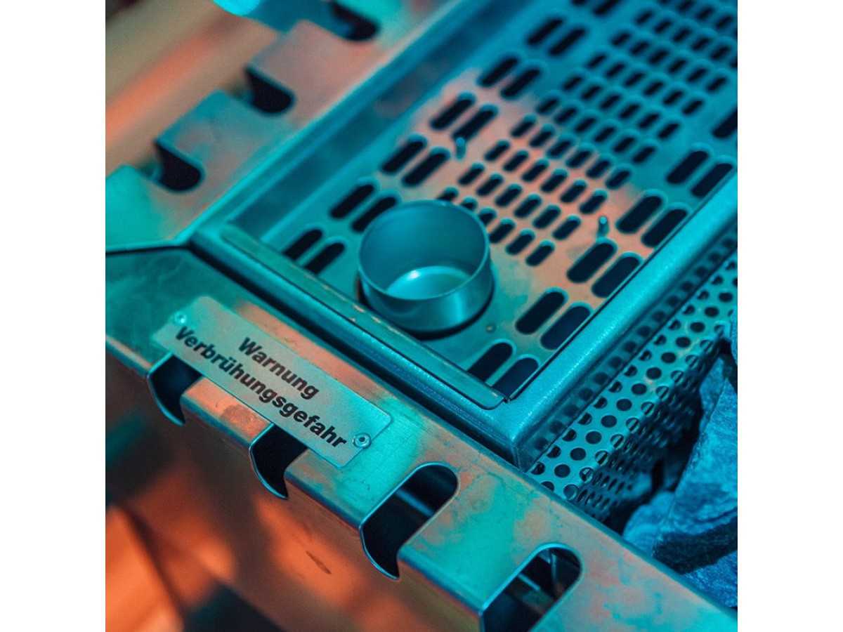 По базовой схеме паротермальная электрокаменка напоминает привычную печь: корпус из металла, нагревательные элементы и корзина с камнями. Главное отличие — наличие внутри отдельного блока, отвечающего за образование пара.