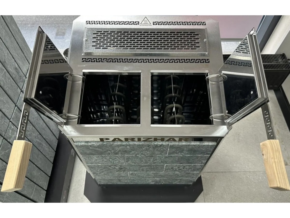 Паротермальная печь для бани – это электрическая каменка, в конструкции которой изначально предусмотрен отдельный узел для образования пара. Проще говоря, это уже не просто ТЭНы с камнями, а аппарат, который отвечает и за прогрев помещения, и за паровой режим.