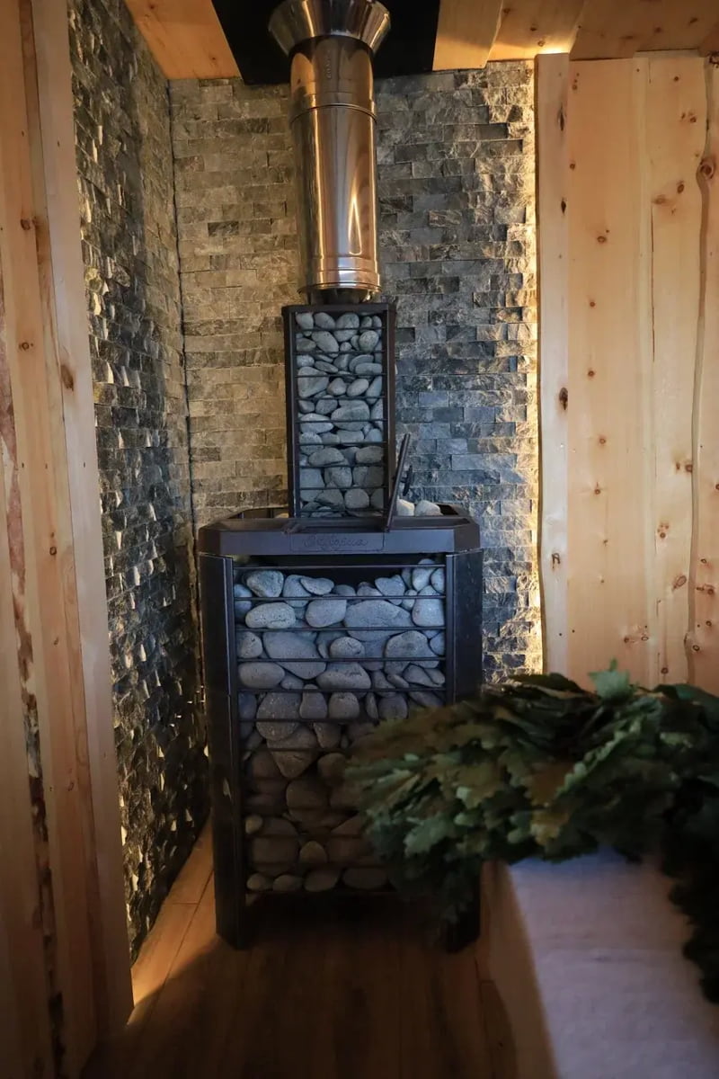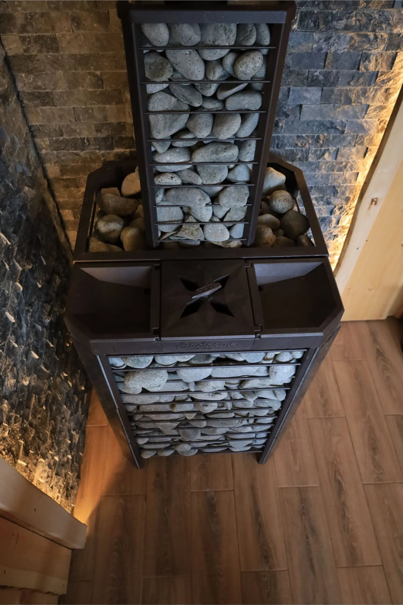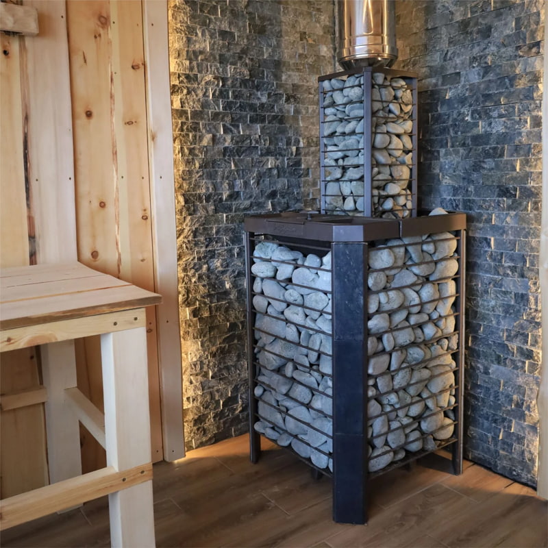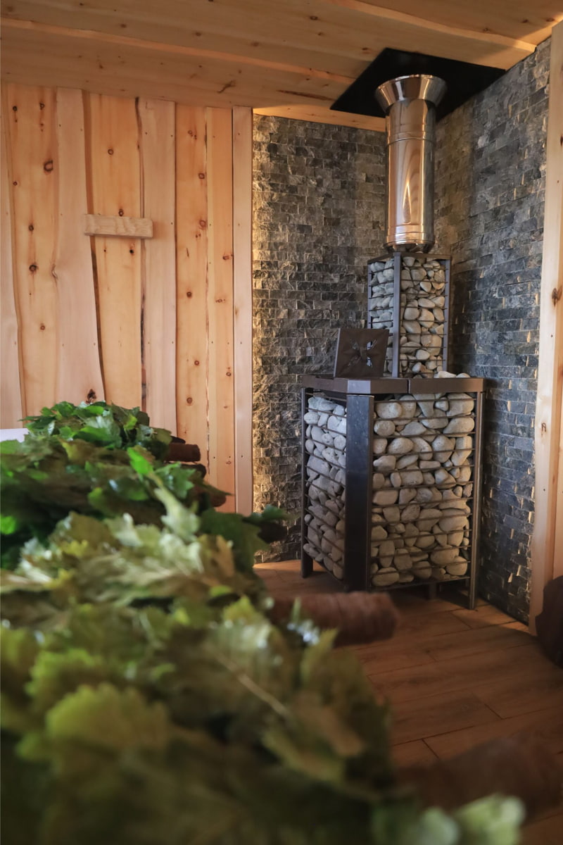 - Уникальная каменка из нержавеющей стали — мощь и комфорт пара.