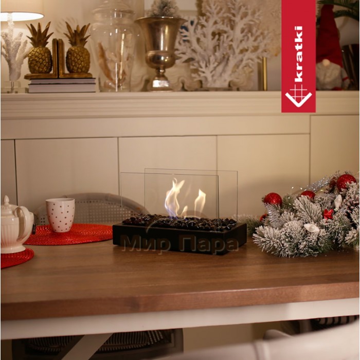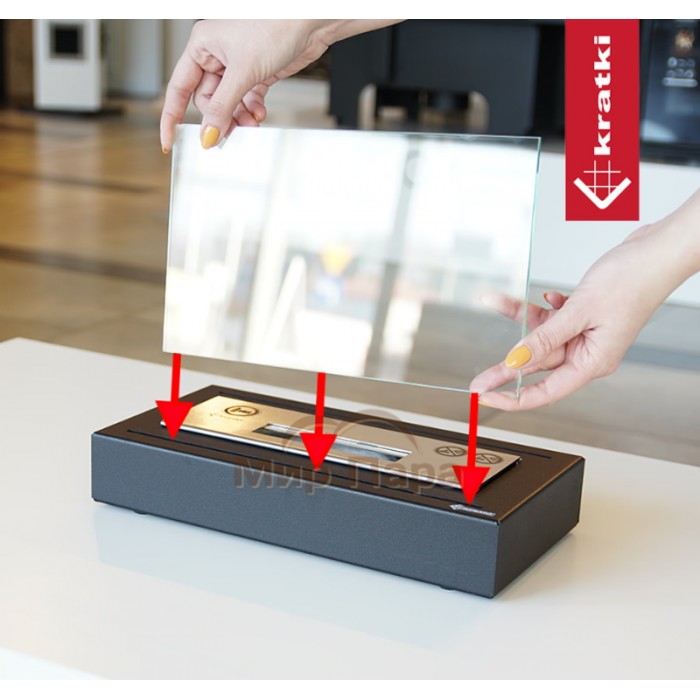 Биокамин Galina не требует сложного монтажа. Просто поместите защитное стекло в основание, залейте биотопливо до уровня, отмеченного на контейнере, и сразу же используйте. С помощью прилагаемой ручки можно в любой момент погасить и отрегулировать пламя.