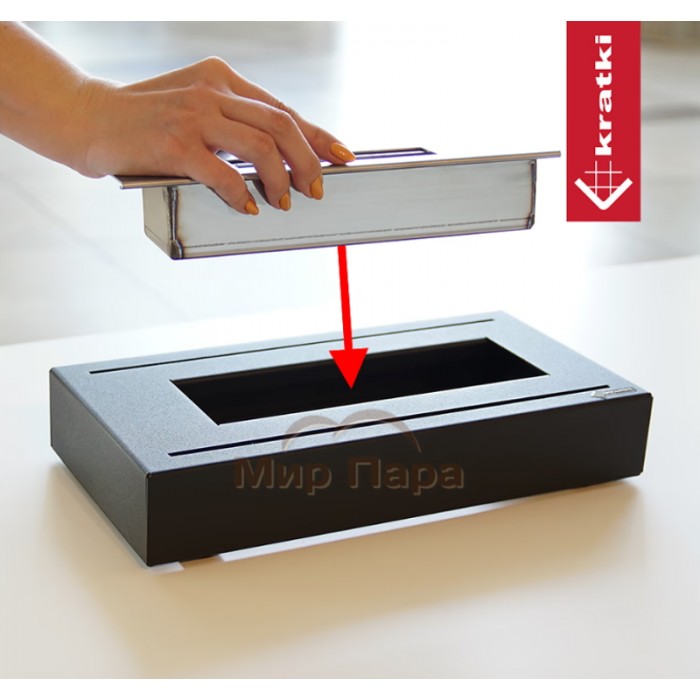 - Удлиненный топливный контейнер позволяет красиво расположить огонь в центре биокамина.