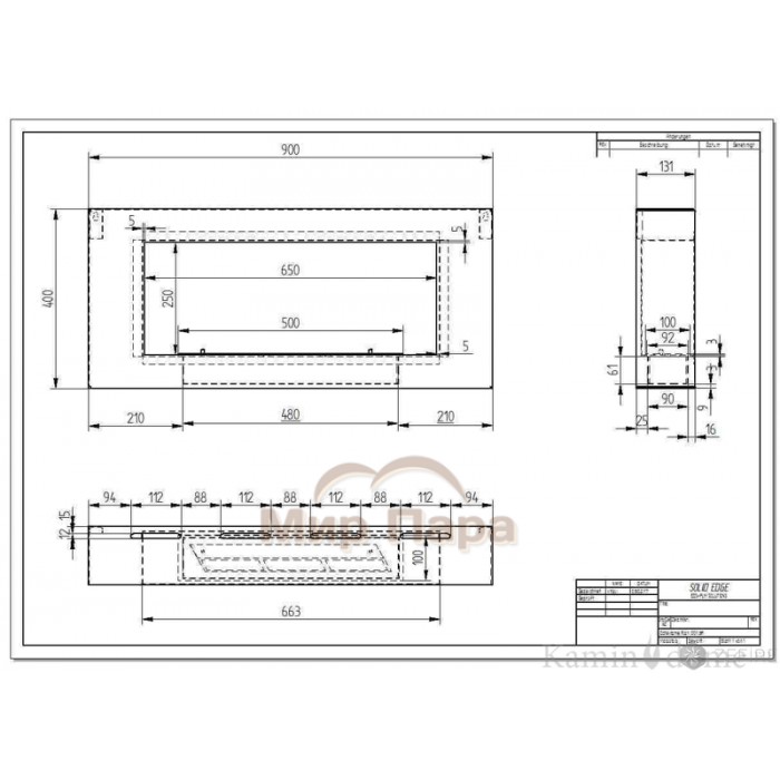 Биокамин Zefire Orion 900 c белой рамкой со стеклом