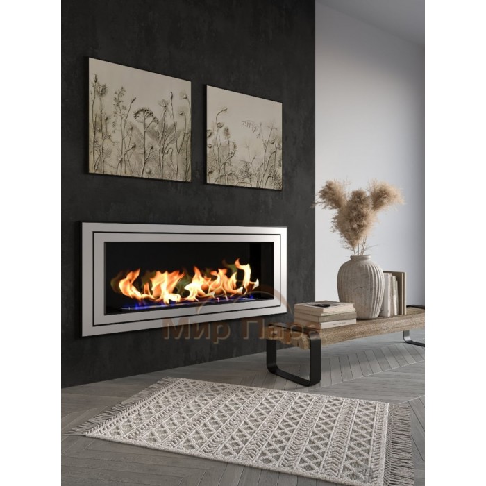 Очаг стальной в порошковой окраске с лицевой поверхностью из шлифованной стали, топка из шлифованной нержавеющей стали