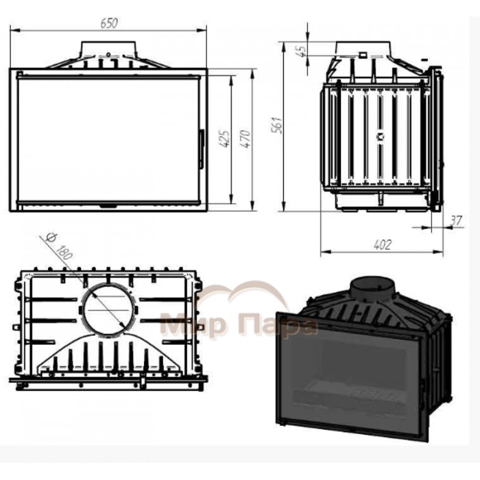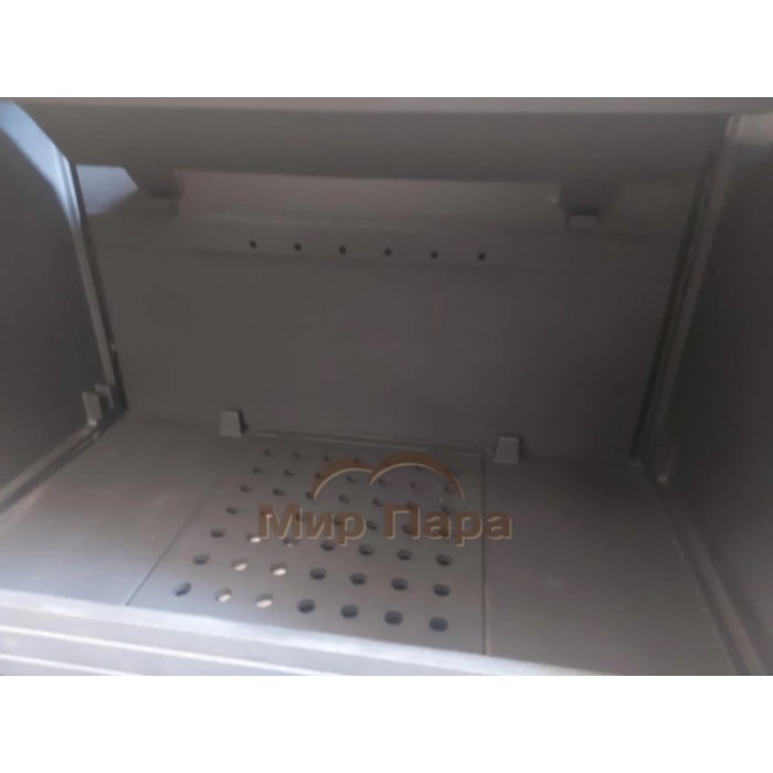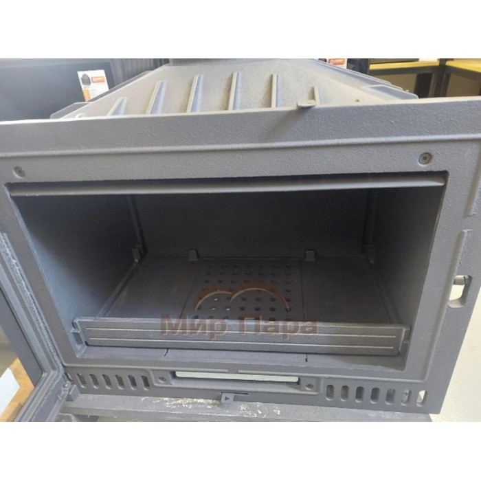 Топочная камера достаточно глубокая (292мм) и широкая (554мм). На дне установлен чугунный колосник, а перед стеклом чугунный ограничитель для дров, для того, чтобы горящие поленья не упирались в стекло и не закапчивали его.