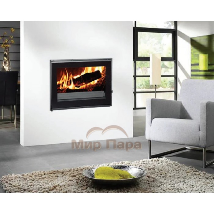 Топка оснащена регулируемой системой "чистое стекло". По периметру стекла проложен термостойкий шнур. В верхней части в корпусе топки имеются отверстия для подачи воздуха на стекло, которые имеют регулировку.