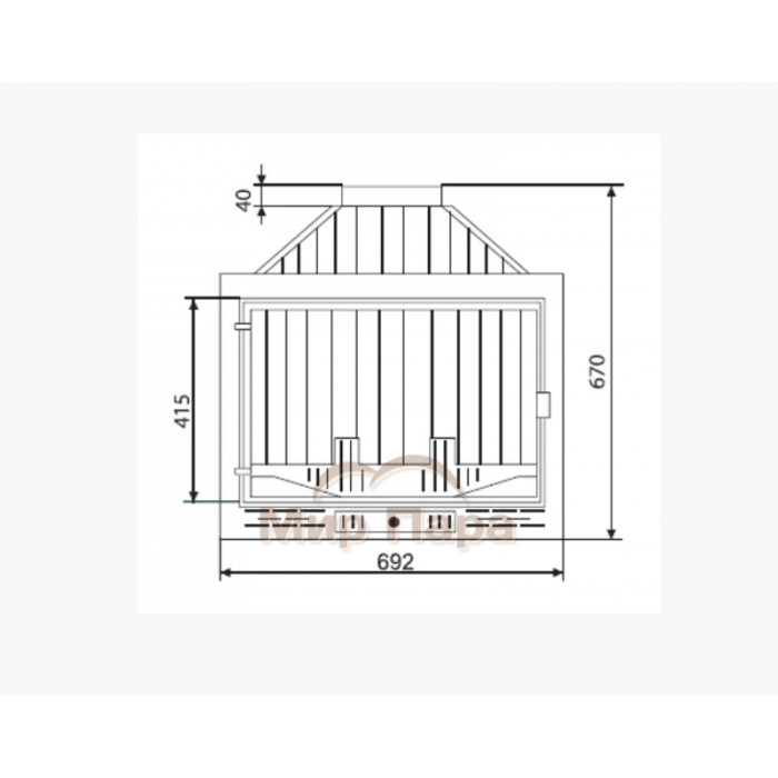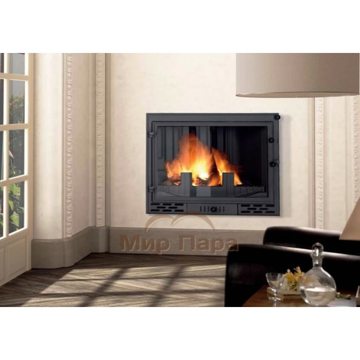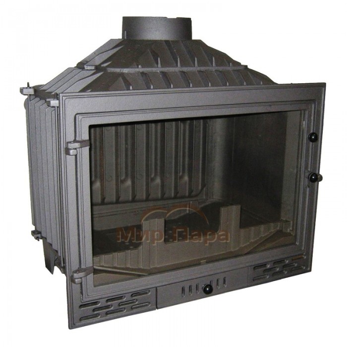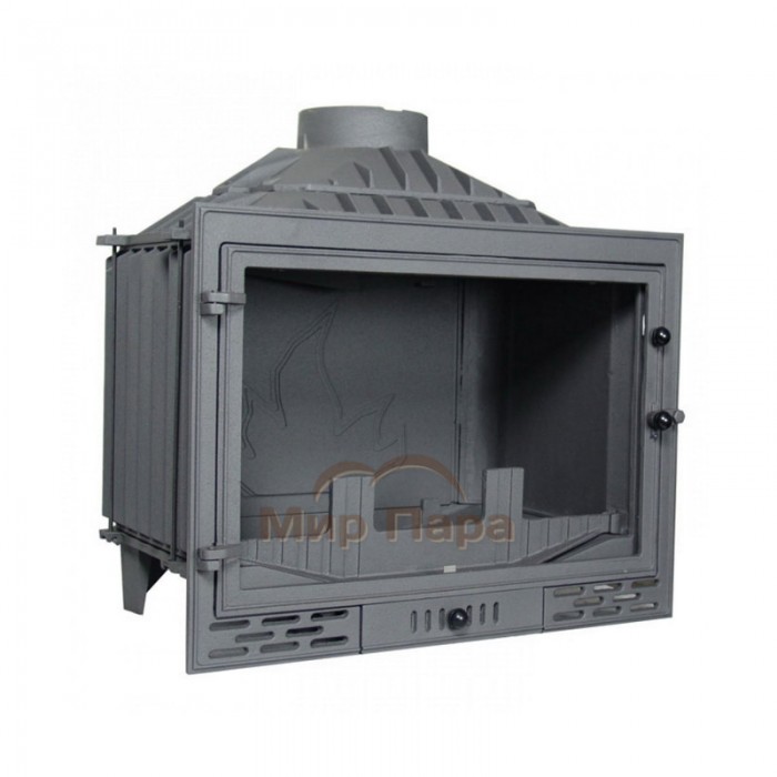 Топочная камера достаточно глубокая (330мм) и широкая (572мм). На дне установлен чугунный колосник, а перед стеклом чугунный ограничитель для дров, для того, чтобы горящие поленья не упирались в стекло и не закапчивали его.