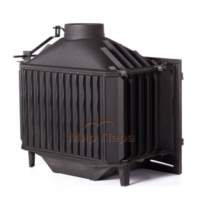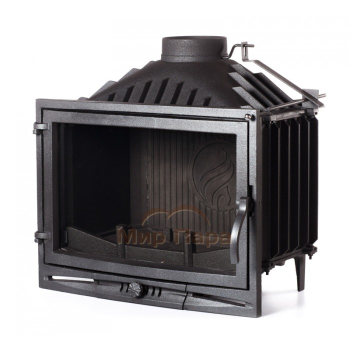 Каминная топка оснащена регулируемой шиберной заслонкой, съемной вертикальным экраном (гребнем), колосниковой решеткой и задней внутренней стенкой. Обогрев помещения происходит путем конвекции воздуха, поступающего через отверстия, размещенные в нижней части фасада, и выбрасываемого уже горячего через решетки, размещенные в нише над топкой или через выводы в другие помещения. Площадь отвода горячего воздуха должна быть не менее 0,15 м². Отдачи тепла так же производится через нагретые чугунные детали и застекленной дверцы каминной топки.