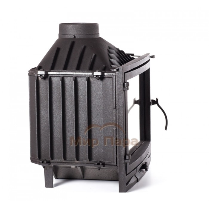 Каминная топка изготовлена из чугунных отливок, которые были соединены между собой по принципу «гребень-паз», загрунтованы огнестойкой массой, а затем прикручены болтами. Фронтальная сторона топки, а также стекло, посажены через уплотнительный негорючий шнур. В нижней части топки размещен съемный ящик для золы. Внутри, в верхней части топки, на чугунных выступах установлен чугунный отбойник, продлевающий процесс горения.