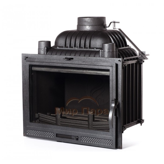 Каминная топка оснащена регулируемой шиберной заслонкой, съемной вертикальным экраном (гребнем), колосниковой решеткой и задней внутренней стенкой. Обогрев помещения происходит путем конвекции воздуха, поступающего через отверстия, размещенные в нижней части фасада, и выбрасываемого уже горячего через решетки, размещенные в нише над топкой или через выводы в другие помещения. Площадь отвода горячего воздуха должна быть не менее 0,15 м2. Отдачи тепла так же производится через нагретые чугунные детали и застекленной дверцы каминной топки.