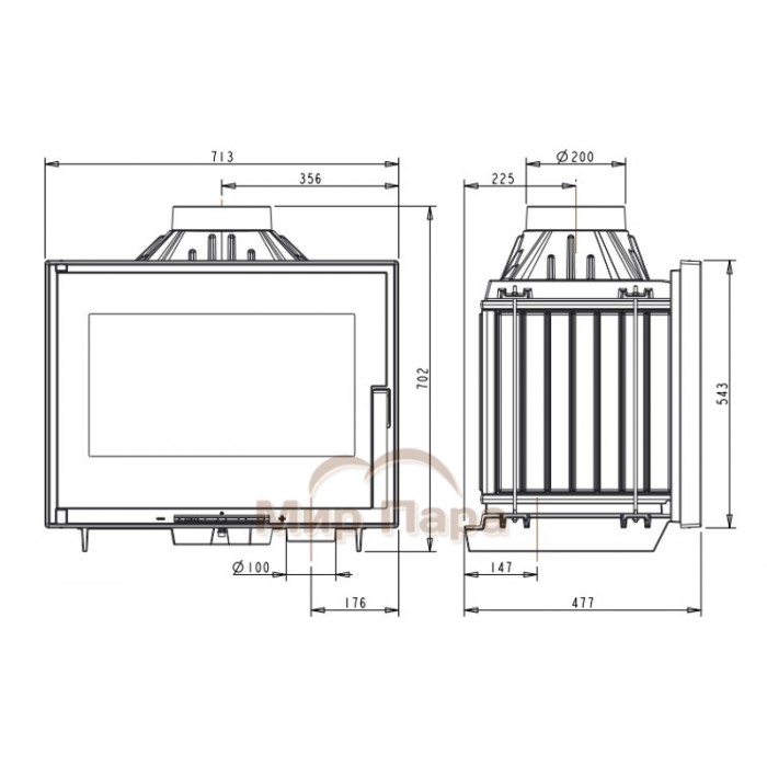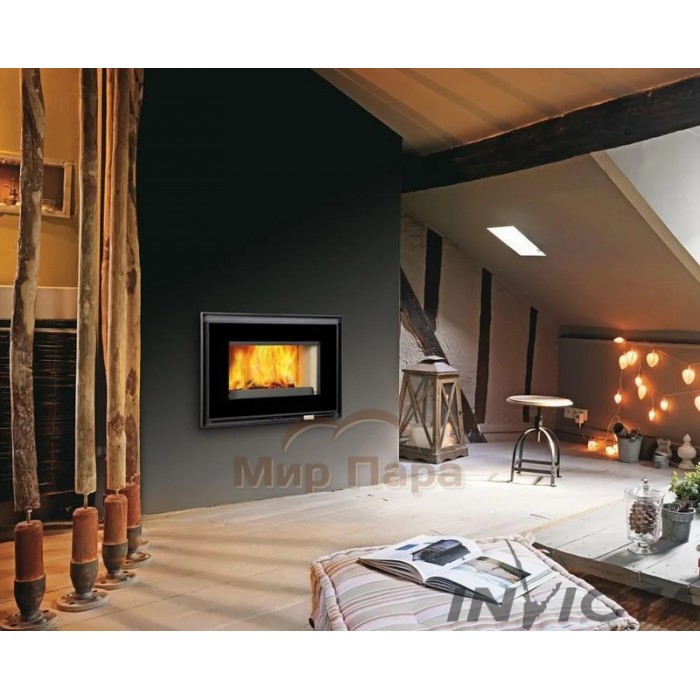 Использование в конструкции топки футеровки из вермикулита повышает ее надежность и улучшает ее внешний вид, максимально приближая к эстетике традиционного каминного очага. Подходит для установки в энергоэффективный дом, имеет специальную систему для подключения воздуха поступающего из вне помещения установки печи, размер патрубка подключения 100 мм.