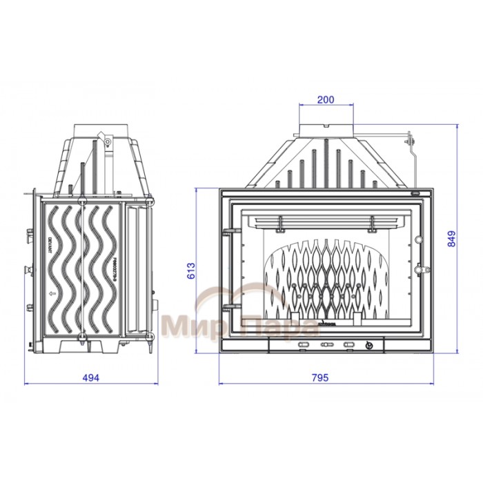 Съемные и заменяемые задняя стенка топки, колосник и рефлектор.