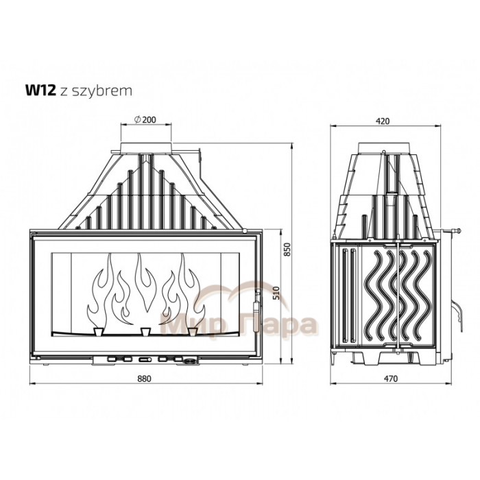 Особенности каминной топки W12 (19,4 кВт):