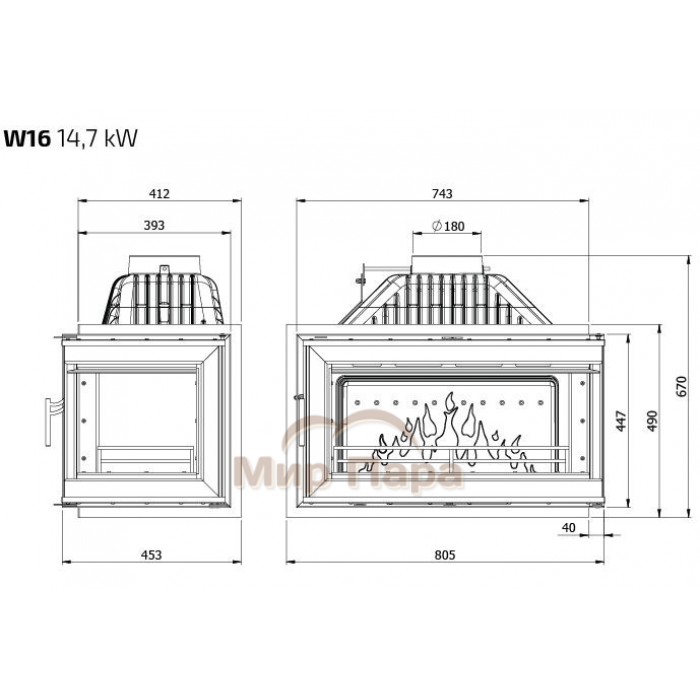 Особенности каминной топки W16 (14,7 кВт) LB: