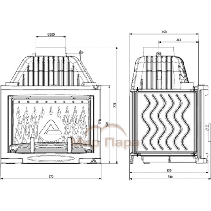- Топка изготовлена из высококачественного чугуна с минимальной толщиной стенки 10 мм.