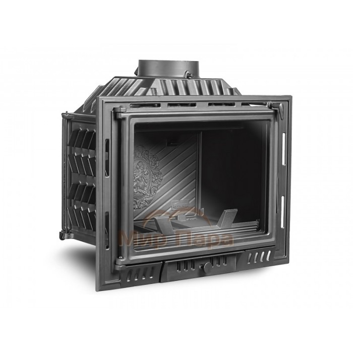 - Во-первых стоит отметить более точную регулировку первичной подачи воздуха через нижнюю часть дверцы под колосниковую решетку. Открыв ее на максимум, вы подаете к дровам оптимальное количество воздуха для быстрого розжига.