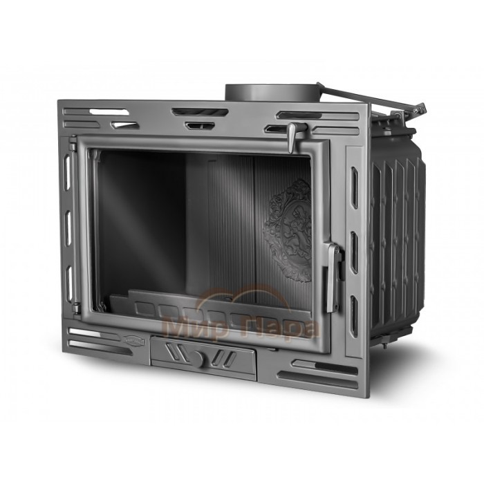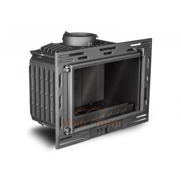- Во-первых стоит отметить более точную регулировку первичной подачи воздуха через нижнюю часть дверцы под колосниковую решетку. Открыв ее на максимум, вы подаете к дровам оптимальное количество воздуха для быстрого розжига.