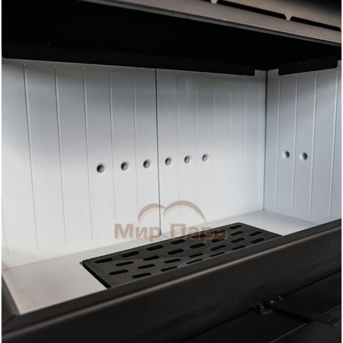 - Футеровка камеры сгорания материалом TERMOTEC белого цвета обеспечивает более длительное поддержание температуры и более эффективное сгорание, что повышает температуру в топке и способствует догоранию частиц топлива, сводя к минимуму вредные выбросы.