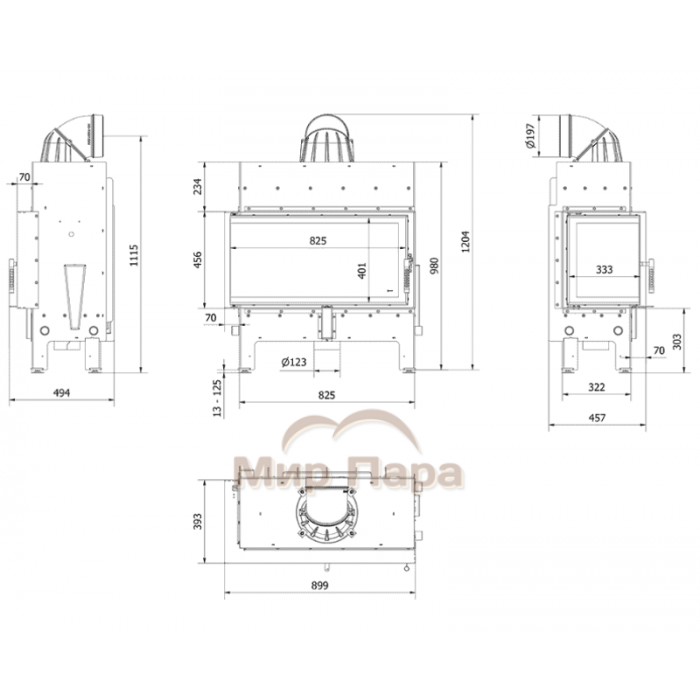 Описание Каминная топка Kratki FLOKI/L/L 12 кВт Ø200