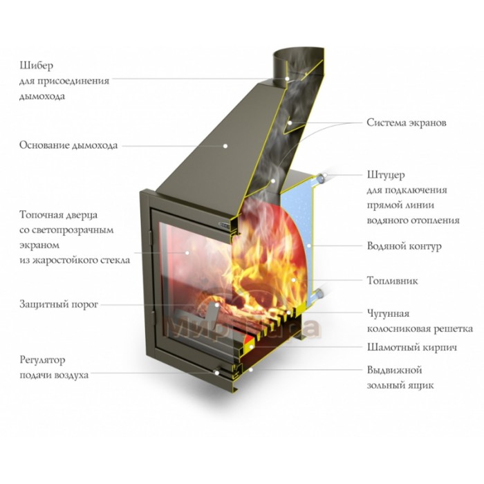 - Топка защищена огнеупорным экраном для увеличения срока службы.