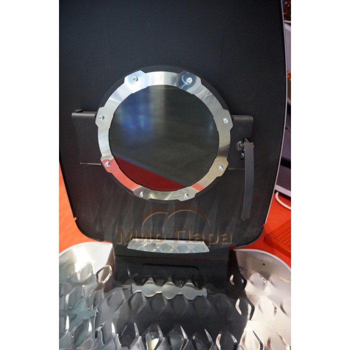 Стильная круглая чугунная дверца печи с жаропрочным стеклом имеет герметичное уплотнение и надежный запорный механизм. Защитный корпус печи обладает высоким конвективным эффектом, ускоряя прогрев помещения, а зеркальная поверхность конвектора отлично защищает от прямого инфракрасного излучения. Благодаря такому зеркальному конвектору из нержавеющей стали объекты и предметы, находящиеся недалеко от печи, не нагреваются.
