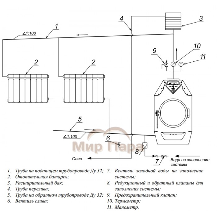 - Водяная рубашка. Печь обладает возможностью нагрева жидкости, при помощи которой она может обогревать смежные помещения с помощью подключенных к ней радиаторов отопления водяной системы здания.