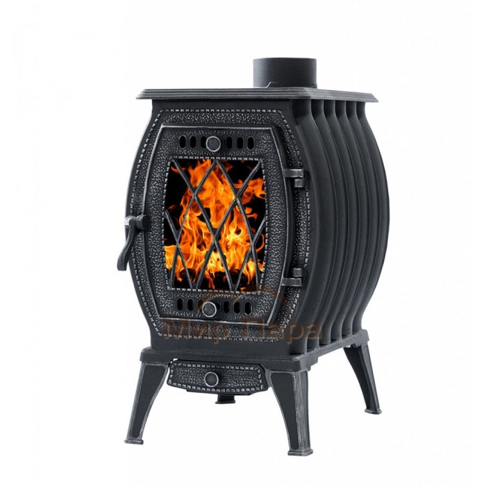 Особые конструкционные решения обеспечивают экономный расход топлива, а наличие варочной поверхности с чугунными конфорками позволяет использовать печь для разогрева воды и приготовления пищи.