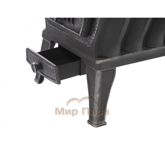 Печь оснащена системой «Чистое стекло», что позволяет защитить стекло от копоти в процессе эксплуатации. Механизм запирания надежно фиксирует дверку простым поворотом ручки. Емкий зольный ящик позволит быстро и аккуратно удалить золу.