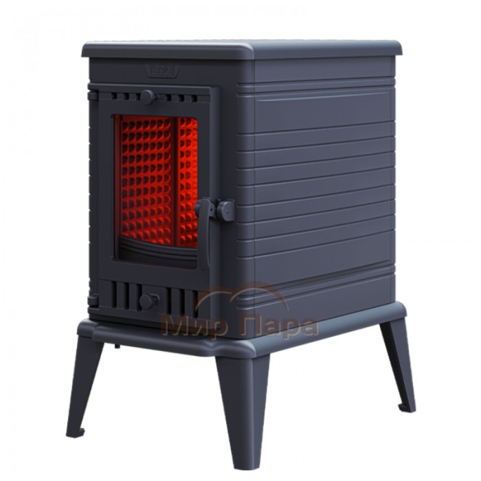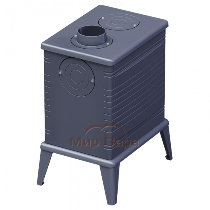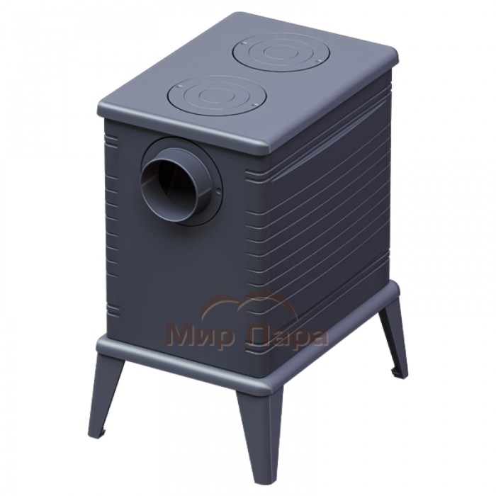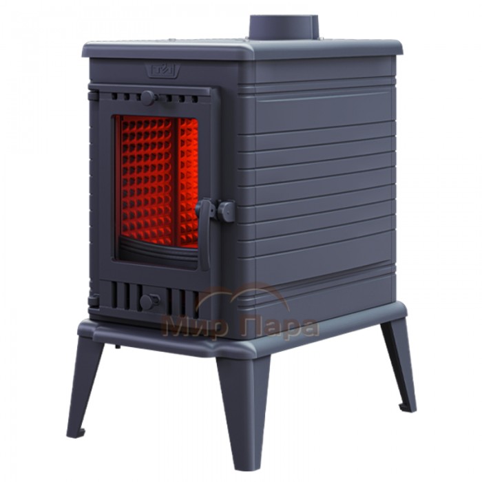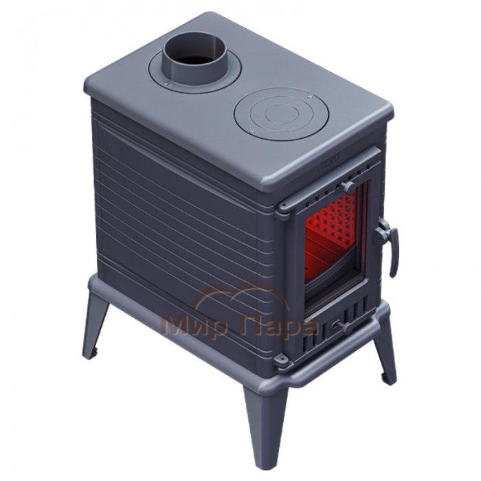 Дверца печи оборудована жаростойким стеклом для возможности любоваться огнём и контролем за прогоранием дров. Печь имеет 2 варианта подключения дымохода: верхнее и заднее.