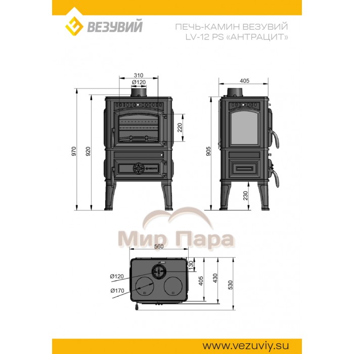 Описание Печь-камин Везувий LV-12РS «Антрацит»